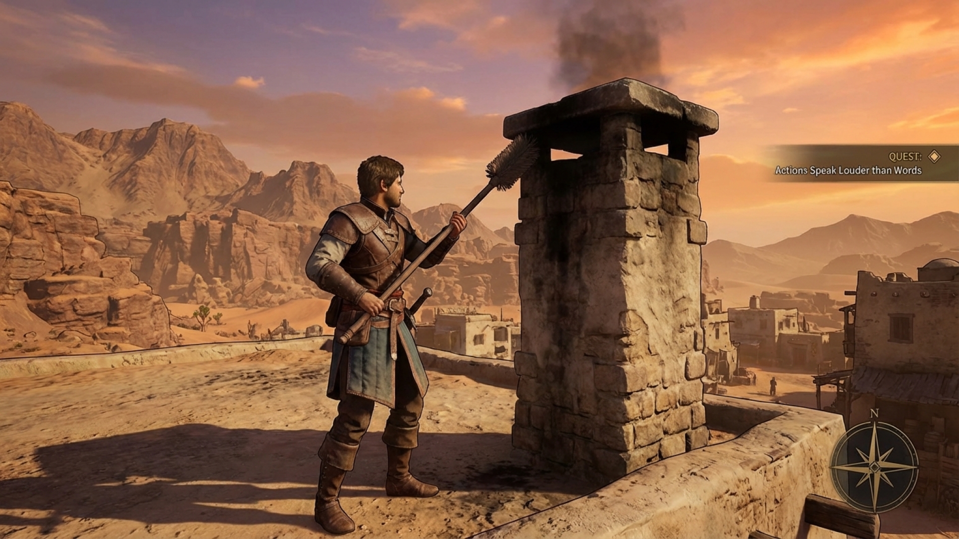 Keep in mind that positioning is key. If you aren’t standing directly over the opening or aiming correctly, Kliff will perform a standard spear-thrust animation against the chimney rather than cleaning it. Once the unique sweeping animation triggers and the smoke clears, your task is complete.